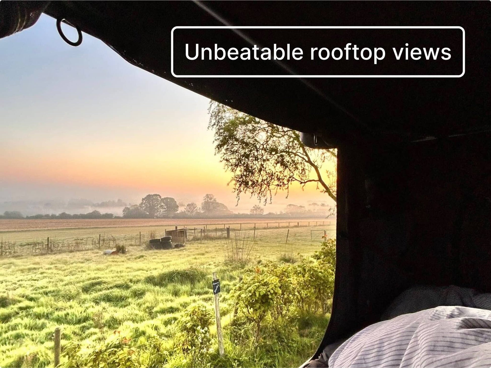 You can pitch anywhere you can park your car. That includes car parks, lay-bys, and of course campsites. You’re high off the ground, so no need to worry if it’s wet and muddy!